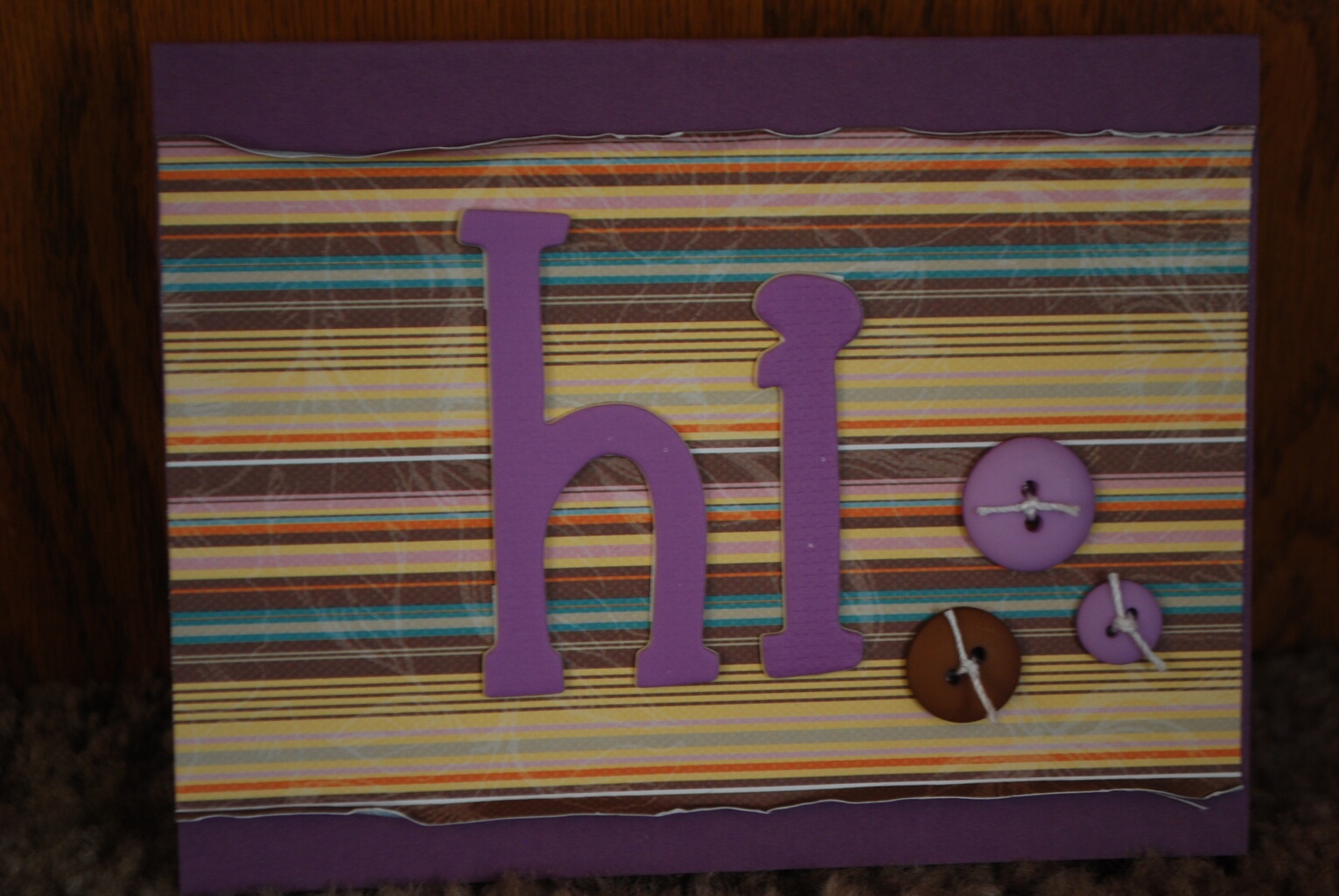Remember the letter stickers from the other day that said thanks? Here is another card using the same stickers. I really hate throwing them out after all of the "usable" letters are used up. Simple words like this can be used on cards to help you get more use for your money. Another great thing about todays card is that it is cheerful and can be used for most any occasion.Friday, May 21, 2010